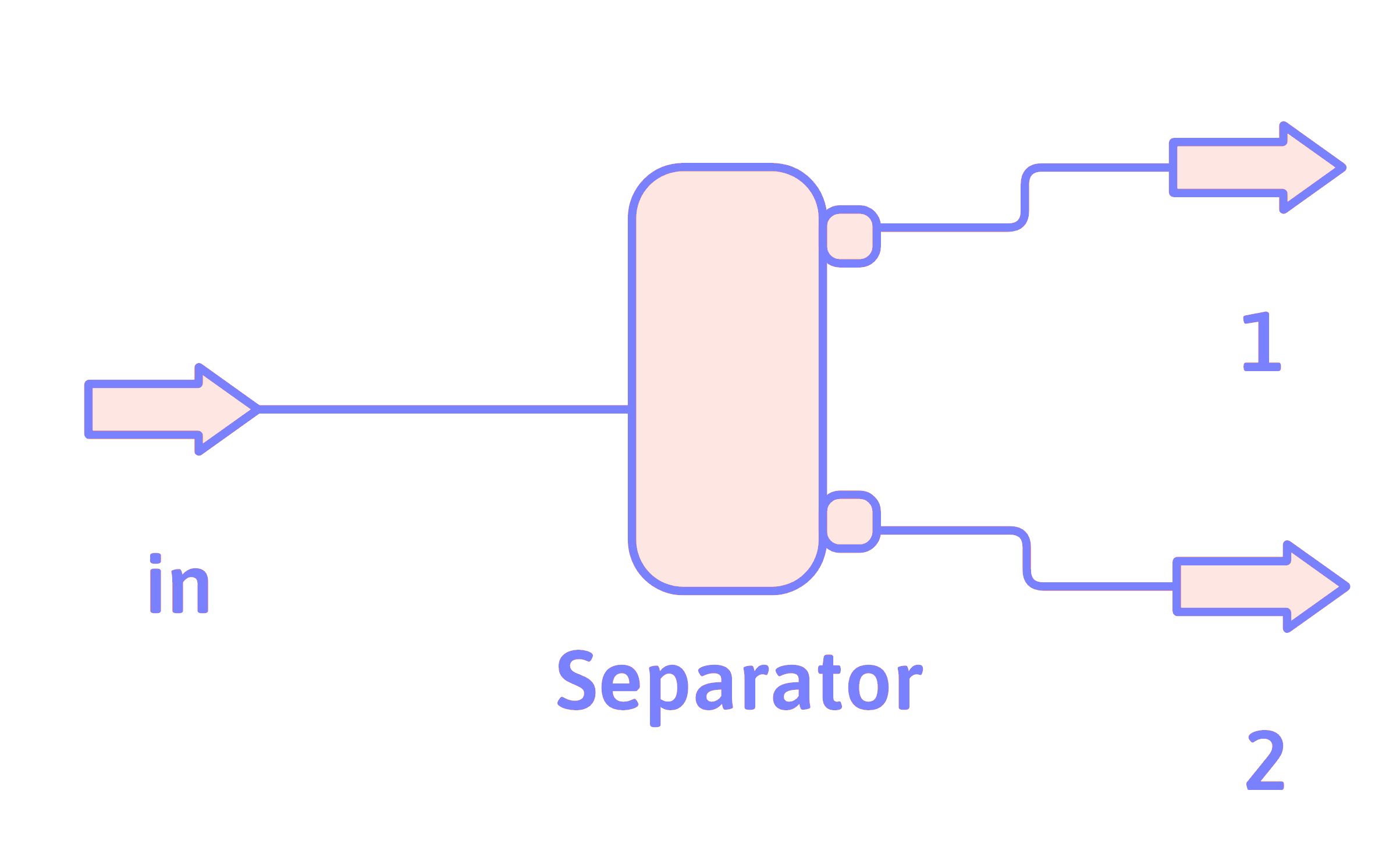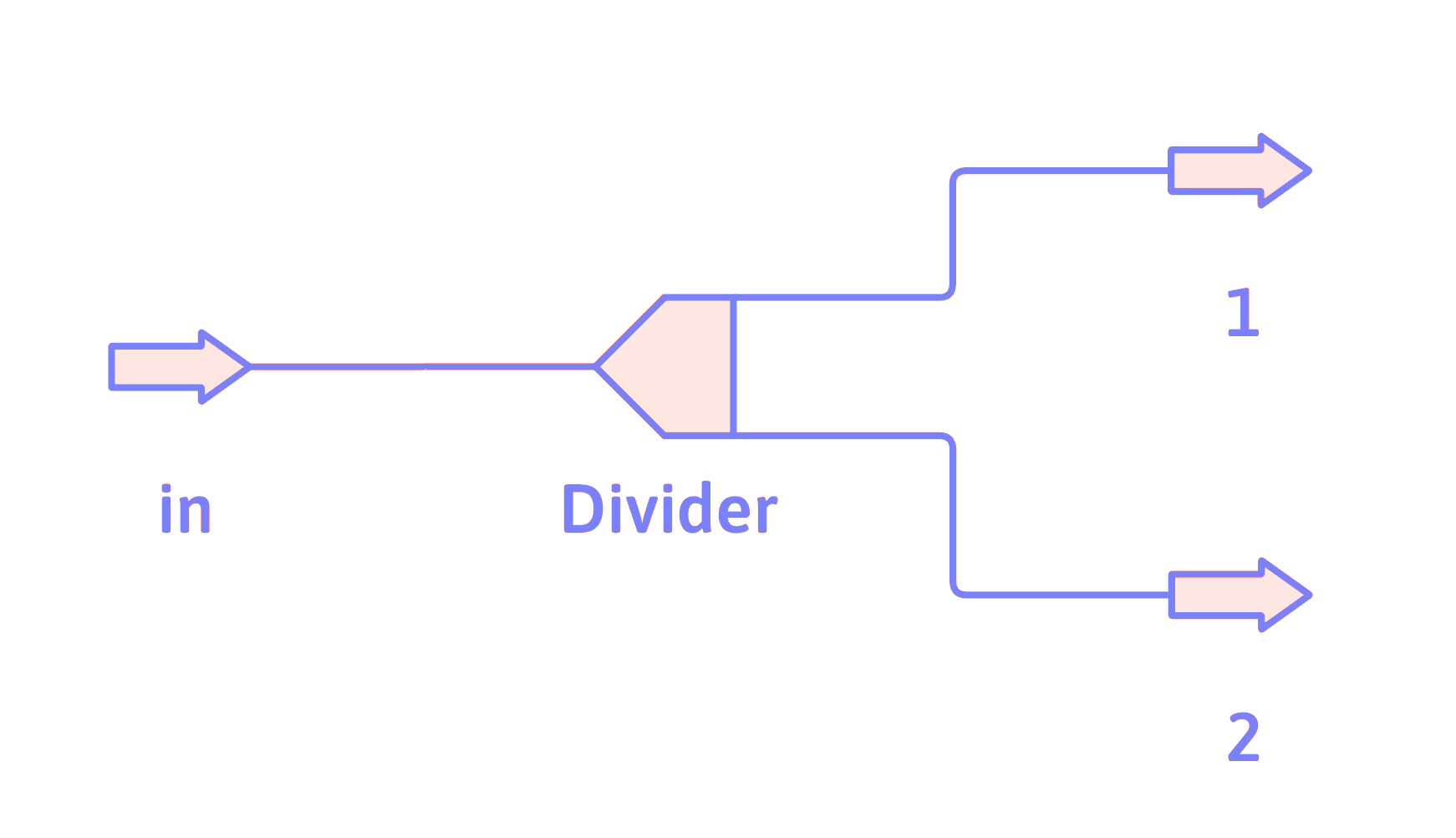 A divider is used when a single stream needs to be divided up into two or more streams. The mass equations for a divider are the same as the mole equations, with the \(n\)’s or