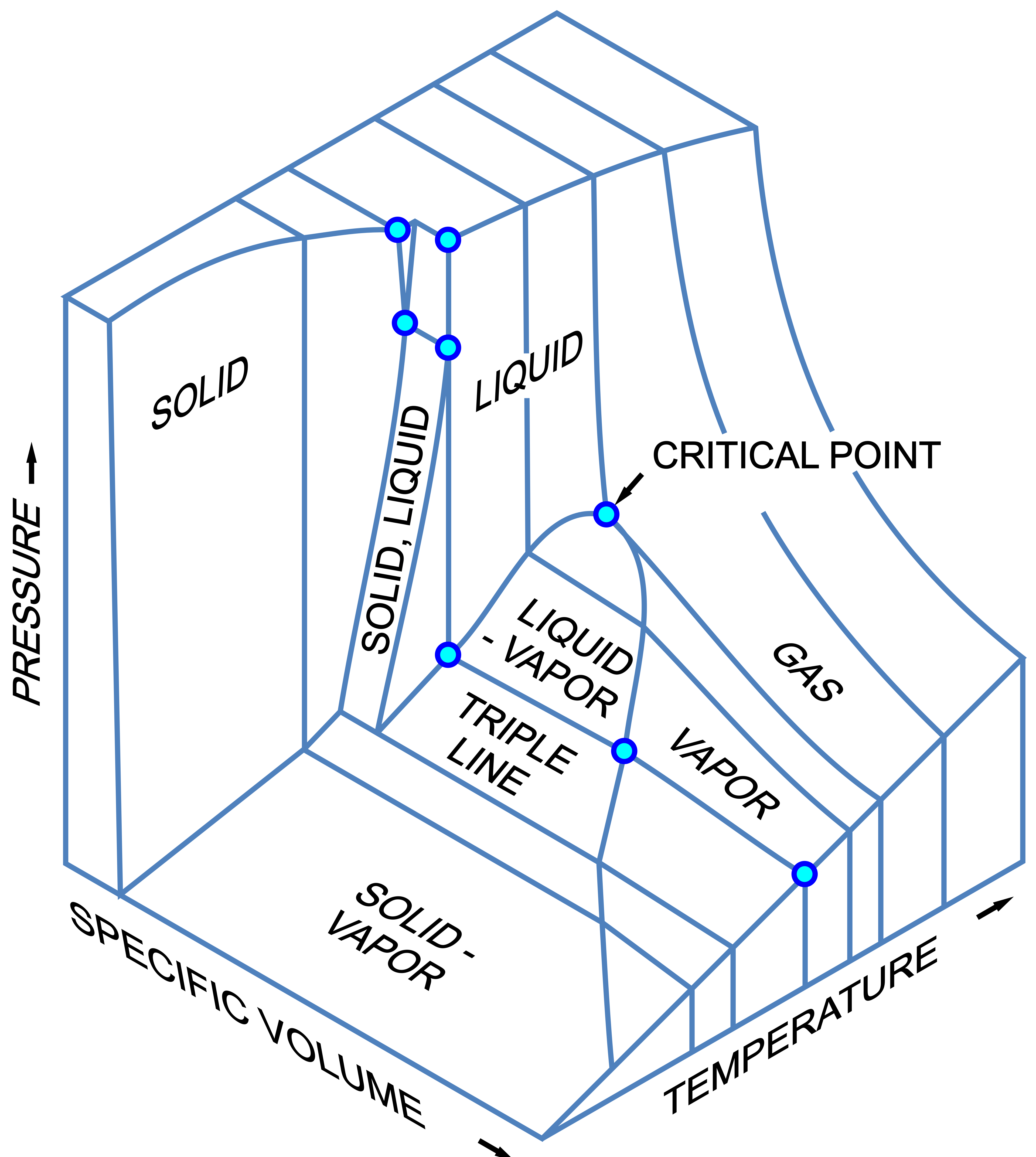 A Phase, \(\Pi\), is a physical entity with a uniform composition, temperature, pressure and specific volume. In a given container, you can have multiple solid phases and multiple liquid phases, but only one vapor or gas phase.