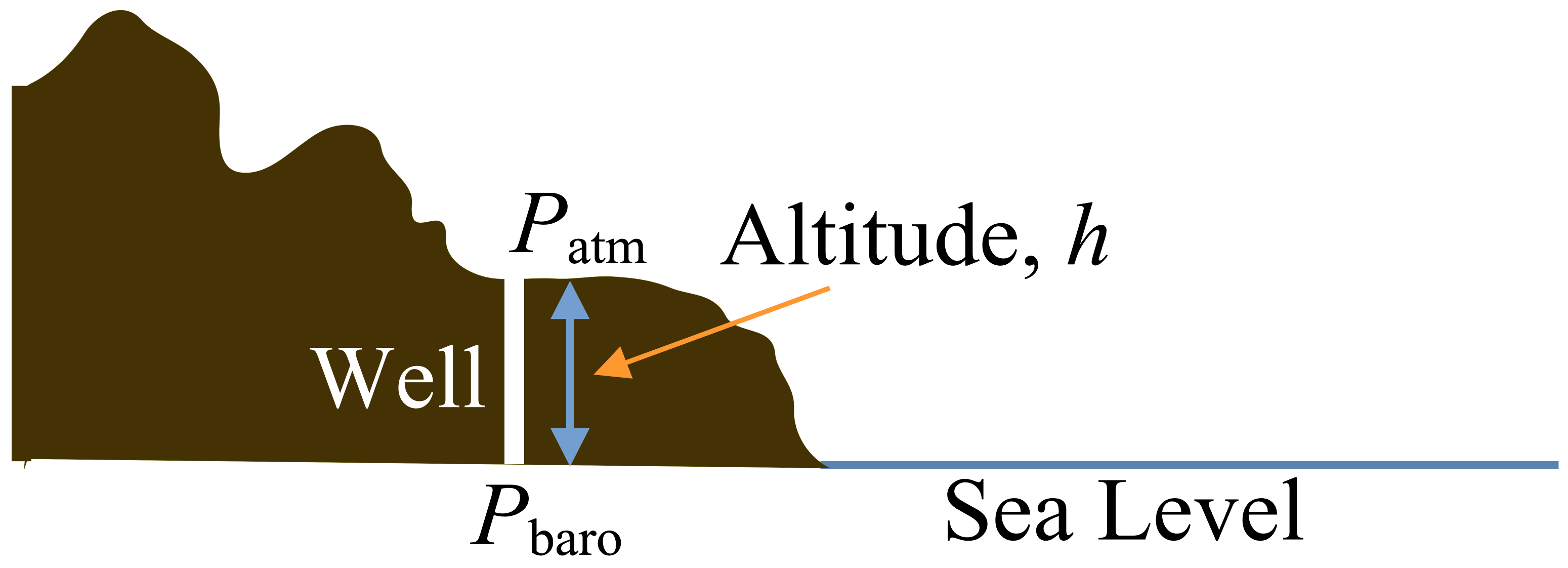 \[P_\mathrm{baro}=P_\mathrm{atm}(1-2.25577 \times 10^{-5}h)^{5.25588}\]