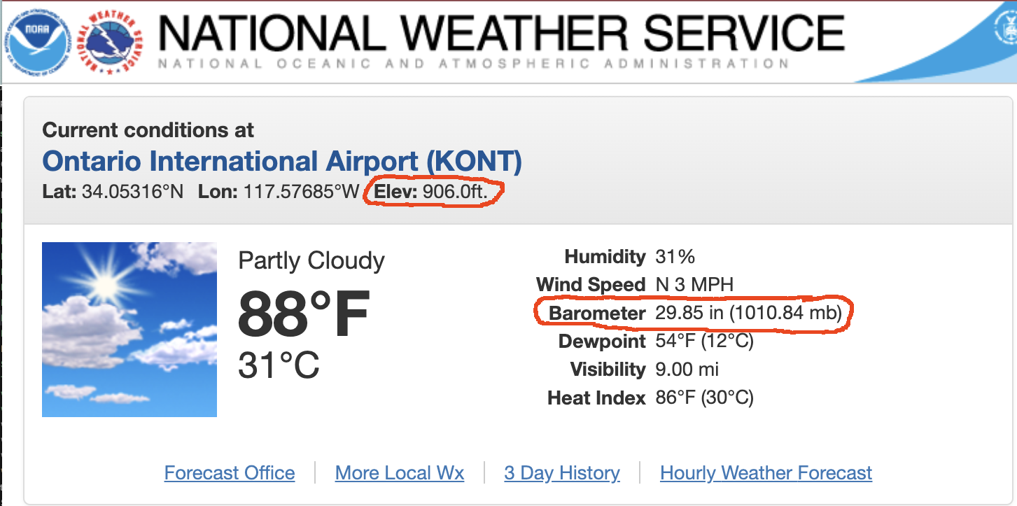 \[P_\mathrm{atm}=P_\mathrm{baro}(1-2.25577 \times 10^{-5}h)^{-5.25588}\]